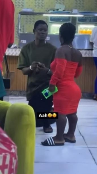A video has captured the moment a lady humiliated her man after he proposed to her at a restaurant.