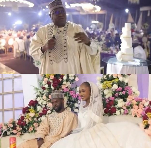 The newlwed couple were at their wedding reception when the bride's father gave a speech directed at his son-in-law.