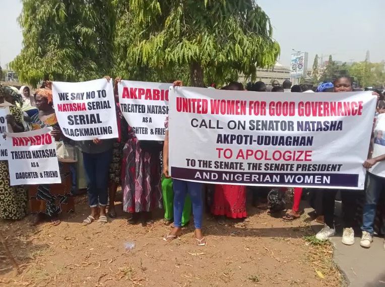 A group of women gathered at the National Assembly, demanding an apology from Senator Natasha Akpoti-Uduaghan for her s*xual harassment allegations against Senate President Godswill Akpabio.