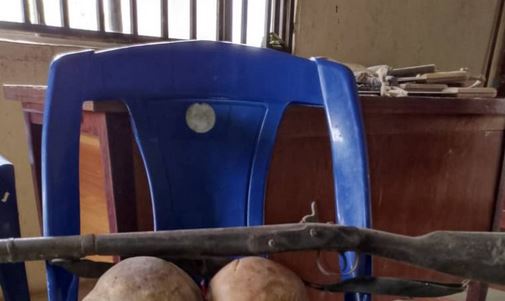 The man was arrested for being in possession of two human skulls and three locally made guns.