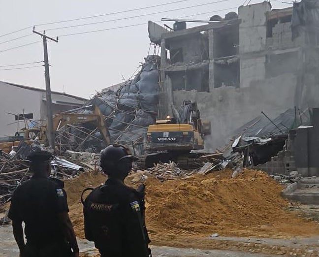 A two-storey building with a penthouse under construction collapsed on Oriwu Street in the Lekki area of Lagos on Wednesday, March 5, leading to the death of two persons.