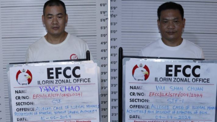 Two Chinese nationals, Yang Chao and Wu Shan Chuan were sentenced to two years imprisonment by Justice Abimbola Awogboro of the Federal High Court, Ilorin on Friday, March 7, 2025, for illegal mining of solid minerals in Kwara State.