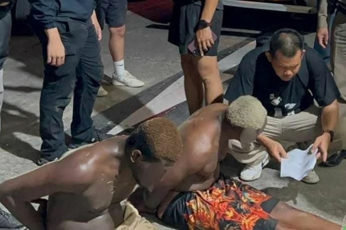 However, police gave chase and overpowered them. The two Nigerians, both shirtless, resisted arrest, resulting in minor injuries to themselves and the arresting officers.