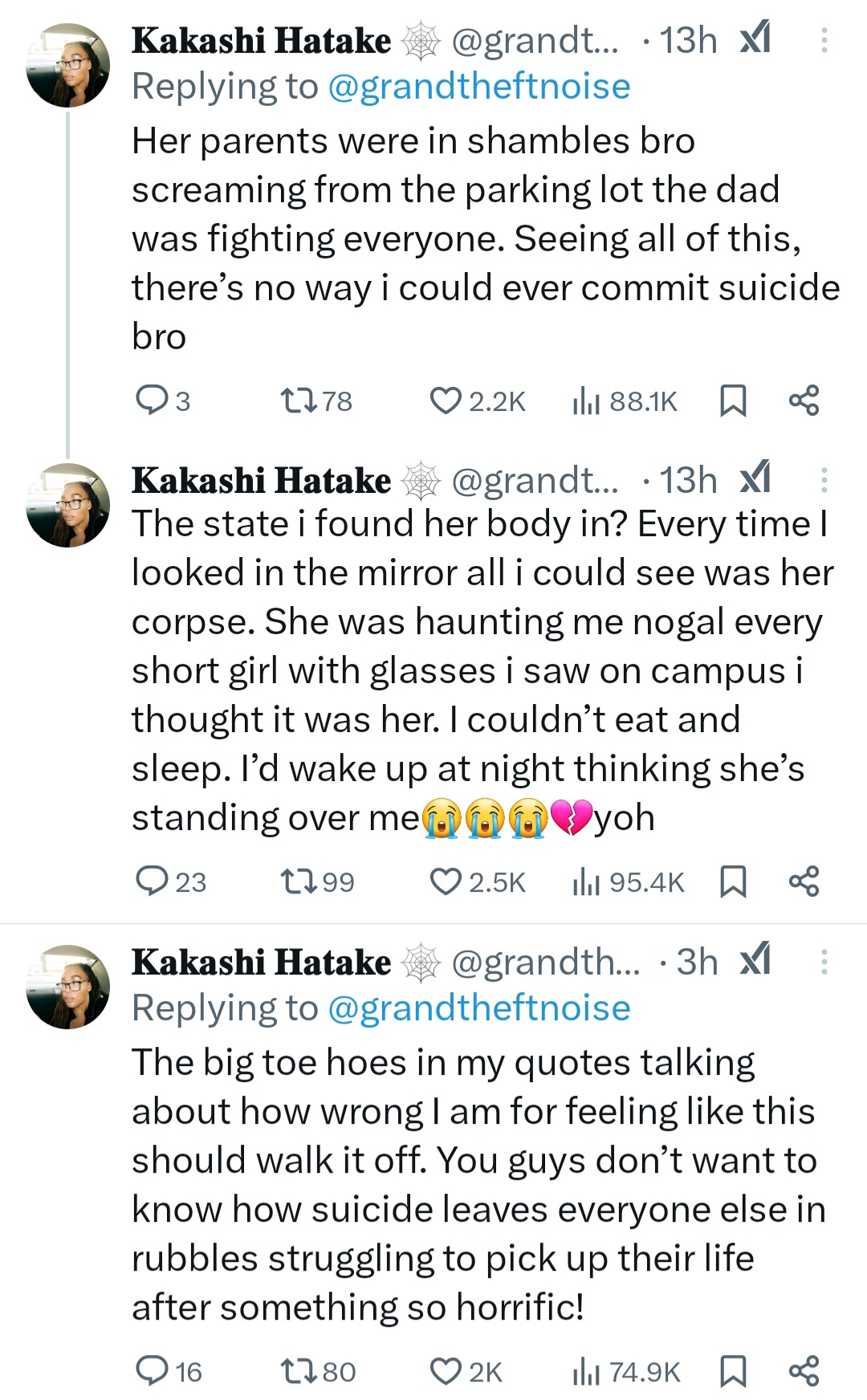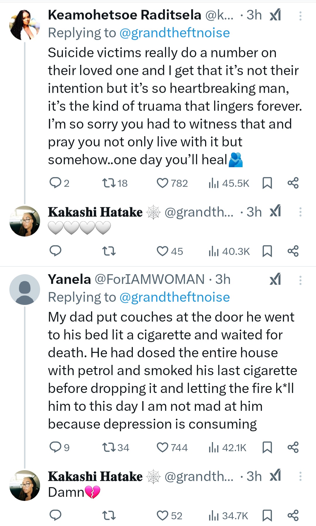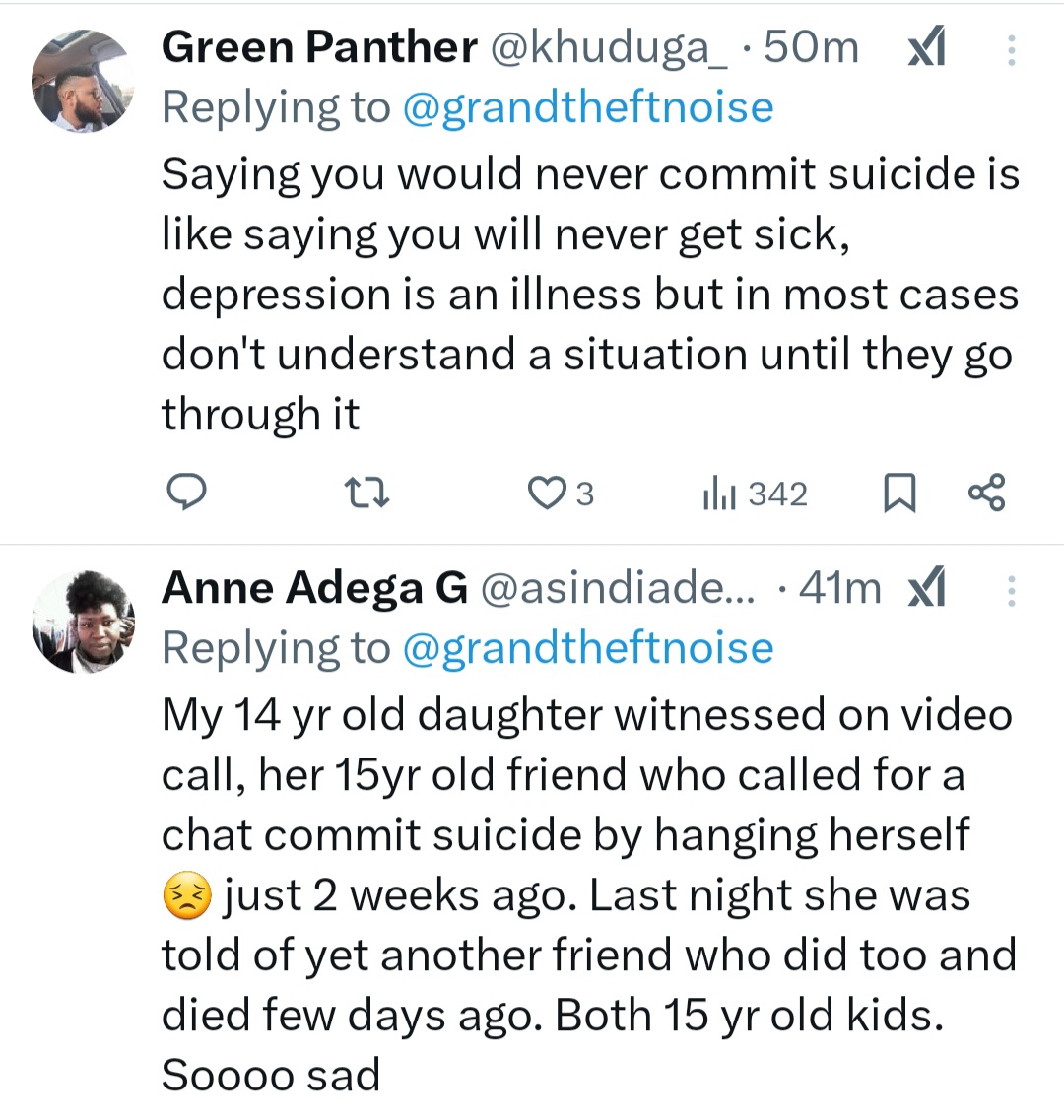 Social media users on the X platform have gone online to share how they were affected by the self-inflicted de@th of someone they knew.