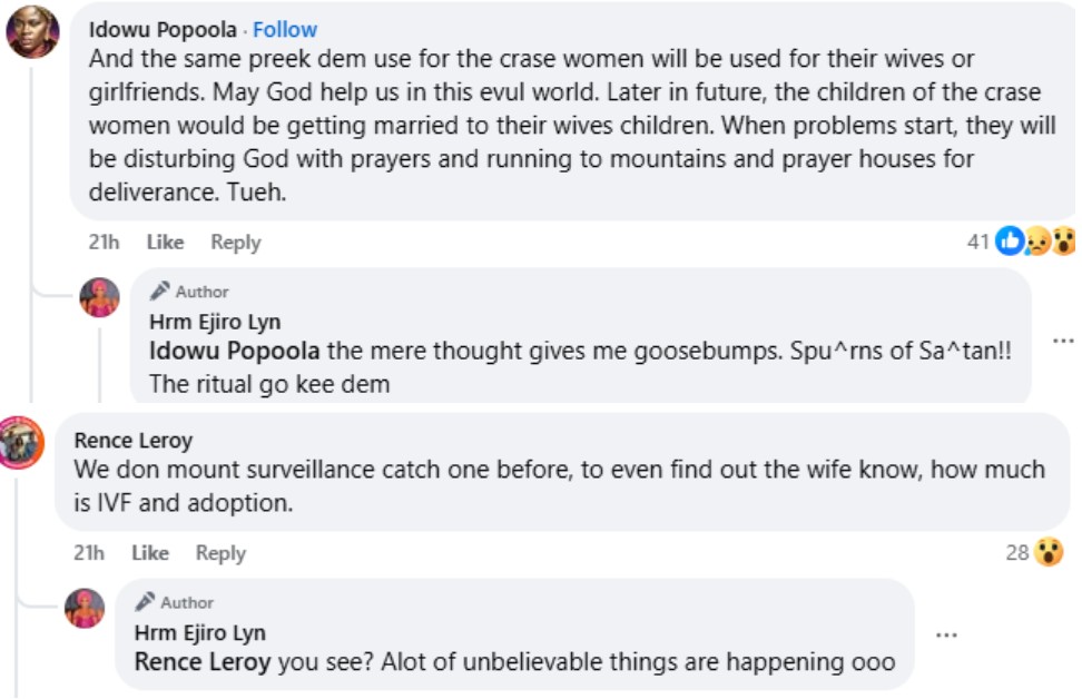 Ejiro Lyn, an apparently disgruntled Nigerian woman, has laid a curse on the men who are impregnating mentally-challenged women in her town.