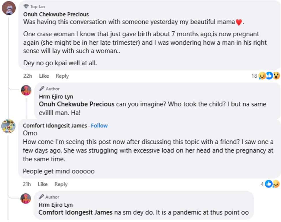 "Just from my house to the office I counted 3 heavily pregnant konk kolo. 2 at new road, 1 at Akintola. Una no go kpai well,” she wrote.