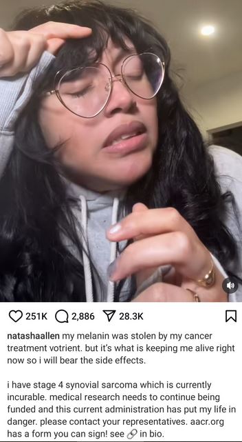 A black woman, Natasha who is battling stage 4 synovial sarcoma has opened up on how her skin colour changed completely while she was receiving treatment.