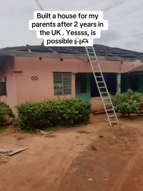 A Nigerian lady who relocated to the United Kingdom 2 years ago has made her parents proud by renovating their home.