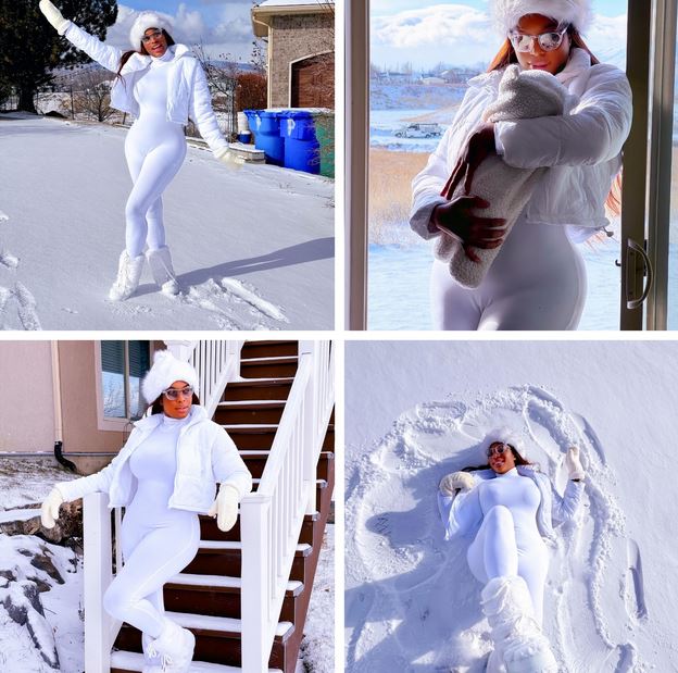 Taking to her Instagram page on Friday, she shared photos of herself and her baby, all bundled up in from a snowy location.