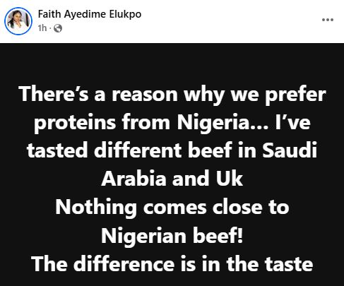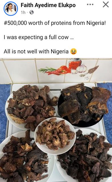 “#500,000 worth of proteins from Nigeria! I was expecting a full cow. All is not well with Nigeria,” she wrote in a Facebook post on Monday.