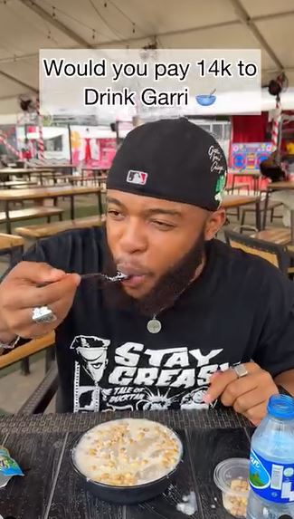 Popular Nigerian food enthusiast, Brian Nwana has sparked mixed reactions after spending the sum of N14,000 on garri at a restaurant.