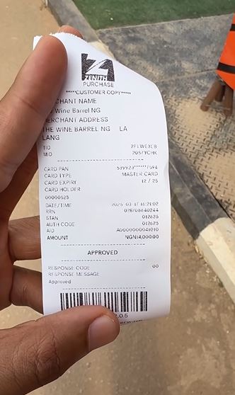 He shared a transaction receipt as proof of payment and a video showing him enjoying the meal.