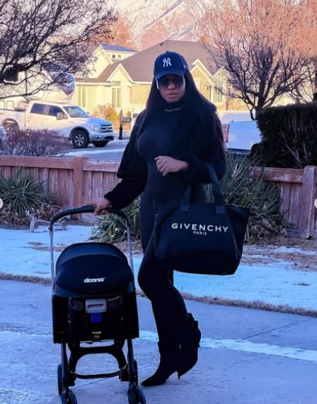 ”In my “mommy era ‘ …. Living it, embracing it, loving it and owning it! 🖤💋”.