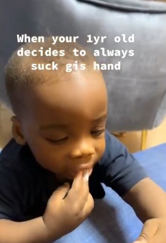 In a video shared online, the 1-year-old boy is seen putting his index and middle finger in his mouth to suck.