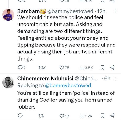 "We shouldn’t see the police and feel uncomfortable but safe. Asking and demanding are two different things. Feeling entitled about your money and tipping because they were respectful and actually doing their job are two different things."