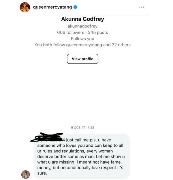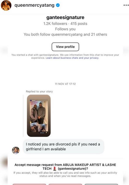 Ex-BBNaija housemate, Queen Mercy Oyekanmi has exposed some of the DMs sent to her husband, David Oyekanmi, by some women asking to replace her when it was alleged that they were having problems in their marriage.