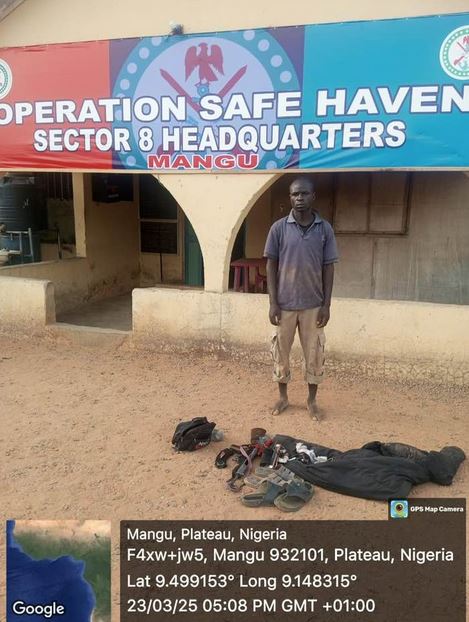 Media Information Officer Operation SAFE HAVEN, Major Samson Nantip Zhakom, who disclosed this in a statement on Monday, March 24, 2025, said the arrest came following an intelligence report that a cult group identified as Jungle Boys was allegedly planning to launch an attack on prominent individuals including political office holders and community leaders over the ban on illegal mining in the state.