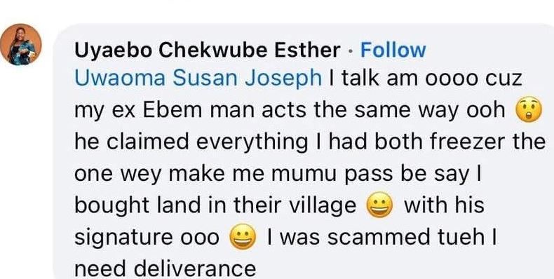 She stated that she felt scammed after he claimed everything she owned, including her freezer.