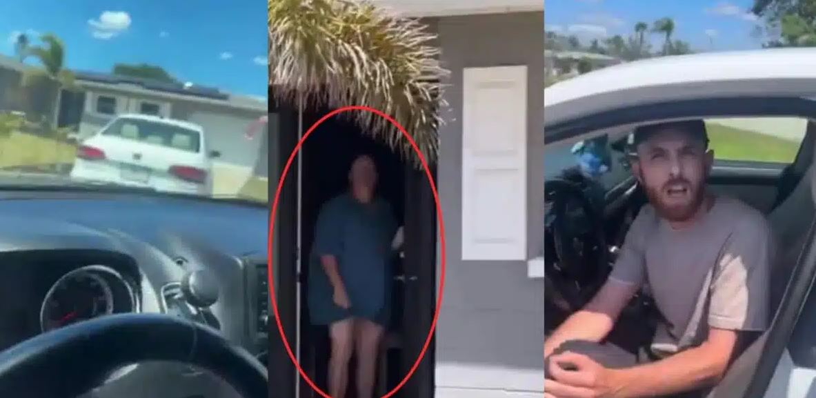 A video has captured the moment a woman who suspects her boyfriend of infidelity tracked him to his alleged lover's house, an older man.