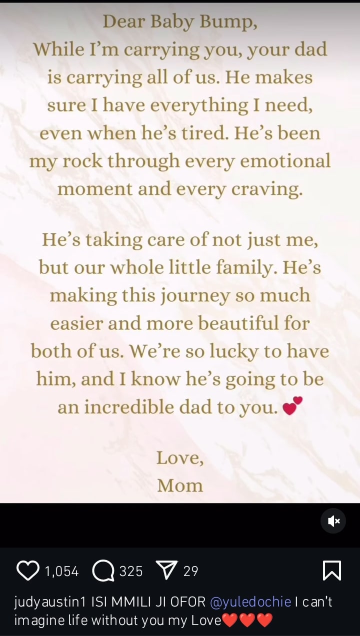 She revealed in her note that Yul is doing his best to provide for her and the baby.