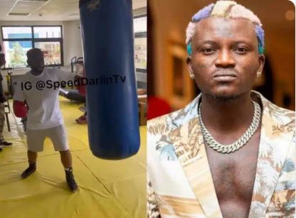 Popular singer, Speed Darlington has been seen training ahead of his boxing match with his colleague, Portable.