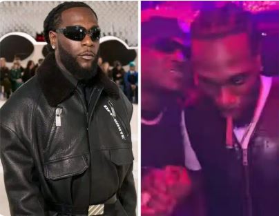 Grammy winner, Burna Boy has been spotted having a good time with singer Peruzzi inside a club.