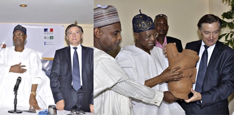 The French Ambassador to Nigeria, Denys Gauer, has officially presented to the Minister of Information and Culture, Alh. Lai Mohammed, the Nok Terracotta figurative sculpture that was intercepted in France while in transit from Togo to the USA.