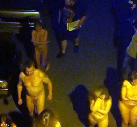 The group marched n*ked before being put into police cars and taken to a police station.