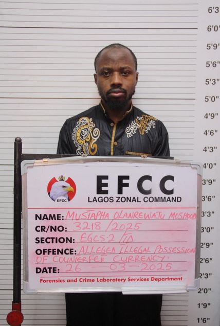 Another count reads: “That you, Moshood Mustapha Olanrewaju (Male), adult, sometime in January, 2025 in Lagos State, within the Jurisdiction of this Honourable Court, had in your possession 26 pieces of counterfeit $50 USD (Fifty United States Dollars) bank note totaling $1,300 (One Thousand Three Hundred United States Dollars), with serial numbers MB61753344C, MB61753471C, MB61753133C, MB61753302C, MB61753228C, MB61753812C, MB61754665C, MB61 753138C, MB61753851C, MB61753272C, MB61753782C, MB61753115C, MB61753470C, MB61753888C, MB61753898C, MB61754441C, MB61753833C, MB61753872C, MB61754437C, MB61753367C and MB61754675C knowing the same to be counterfeit and thereby committed an offence contrary to Section 5 (1) (b) and punishable under Section 5 (2) of the Counterfeit Currency (Special Provisions) Act, Cap C35, Laws of the Federation of Nigeria, 2024.”