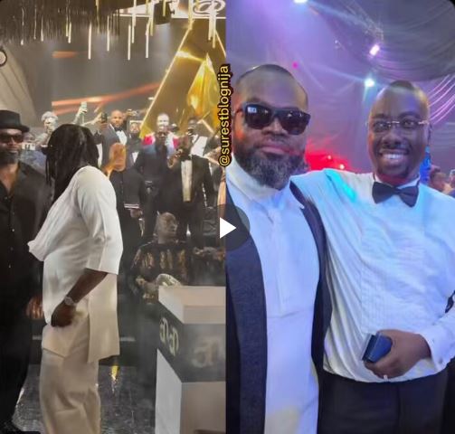 Holding a fan, Obi Cubana could be seen enthusiastically hailing his associate.