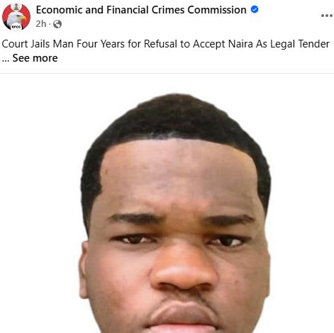 A jeweller, Uzondu Precious Chimaobi, was sentenced to four years imprisonment on Tuesday, April 15, 2025, by Justice Alexander Owoeye of the Federal High Court sitting in Ikoyi for refusing to accept the Naira as legal tender.