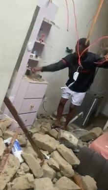 A video shared by the woman shows the extent of the damage. The POP ceiling caved in, landing on her bed, with a gaping hole in the ceiling. Bits of bricks used in building the house also collapsed into her apartment.