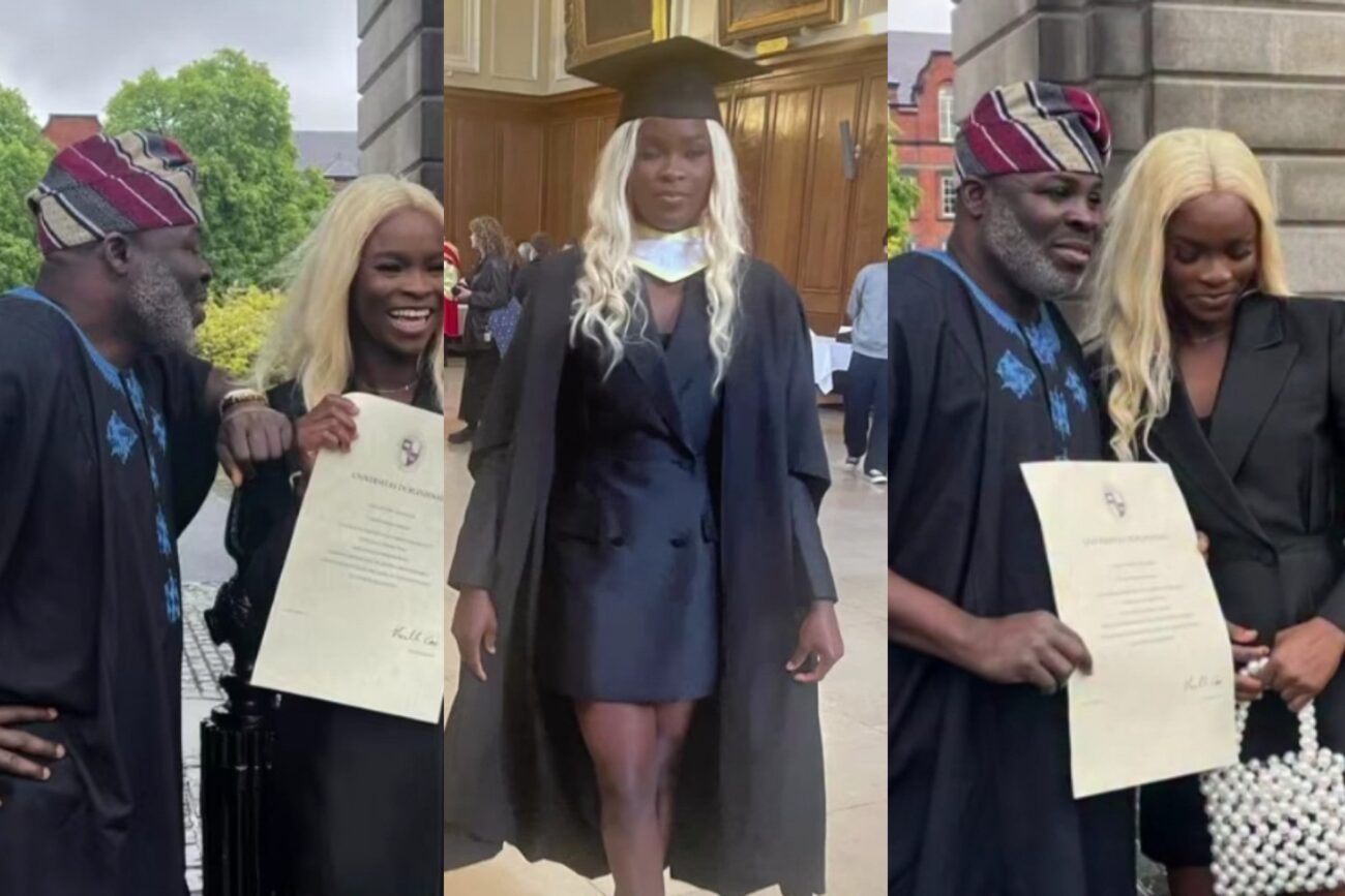 Nollywood actor Muyideen Oladapo has celebrated after his daughter, Olamide graduates from Ireland University.