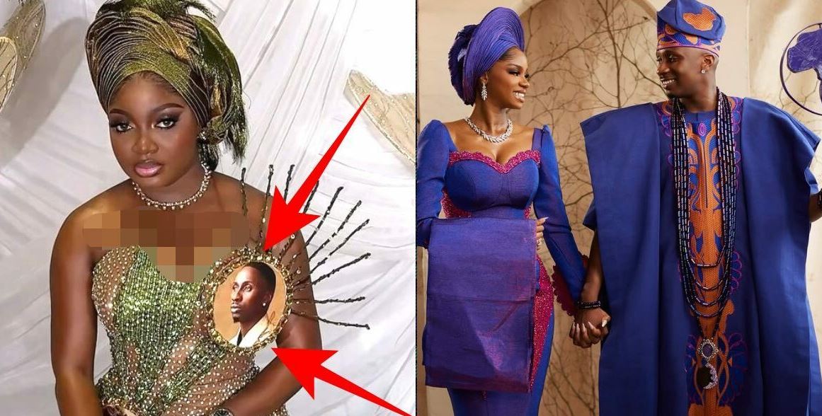 However, one unexpected moment has taken centre stage: Papaya Ex’s striking outfit, which prominently featured the groom’s face on the right side of her chest.