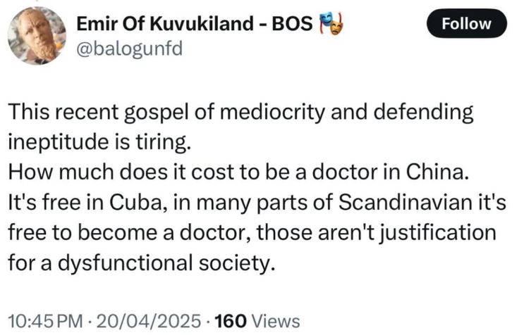 His comment has been greeted with mixed reaction from Nigerians. While some Nigerians agree with him, others were against.
