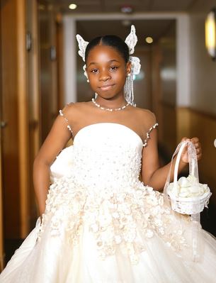 Imade who was the flower girl at the wedding, was captured in a viral clip walking into the wedding venue with the little bride.