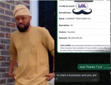 However, Abefe shared the screenshot, captioning it with a tweet that read, “Sent my baby N1M and she hasn’t call to say thank you since 4PM. This is why I don’t like dating yahoo girls in Lagos. Bunch of ingrates”.