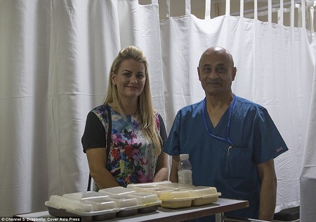 Julie Jones, 35, poses for a picture with Dr Rajagopalan Krishnan, a senior consultant and spinal surgeon, at Apollo Hospital in New Delhi, India