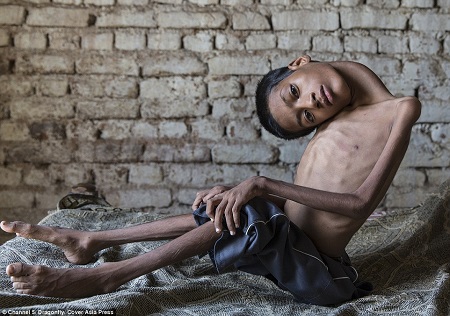 His parents Mukesh Ahirwar, 41, and mother Sumitra Ahirwar, 36, spent years taking him to see doctors but no one could help.