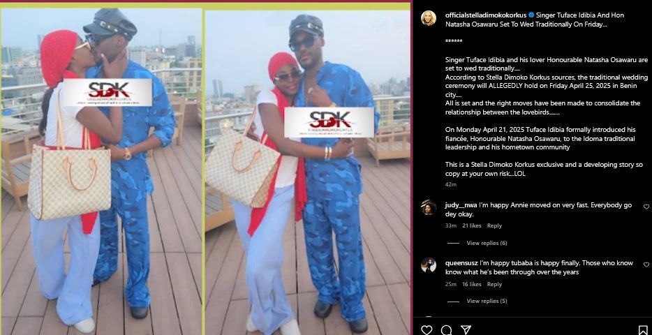 According to popular blogger Stella Dimoko Korkus, the traditional wedding of the singer and the Edo state House of Assembly member will allegedly be held on Friday, April 25, 2025, in Benin City.