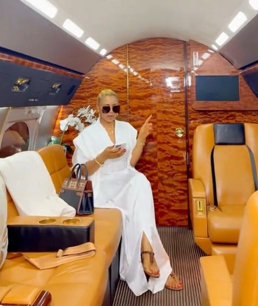 She showed herself boarding a private jet and later being welcomed by her husband, Ned Nwoko.