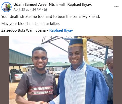 A youth leader identified as Raphael Ikyav has been killed by hoodlums in Benue State, hours after he addressed his critics on Facebook.