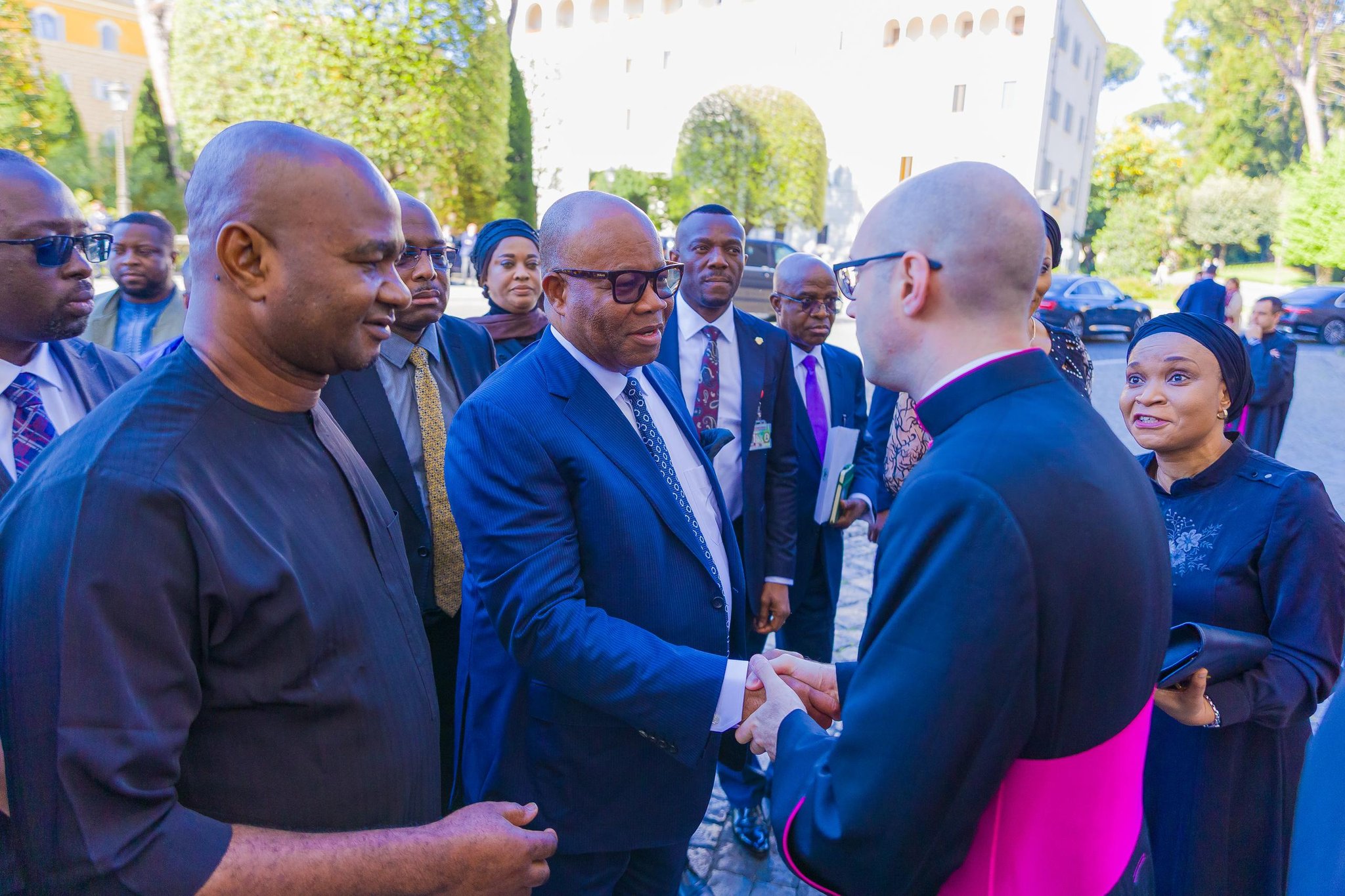 Godswill Akpabio, the Nigerian Senate President, led the Federal government delegation to the funeral of Pope Francis.