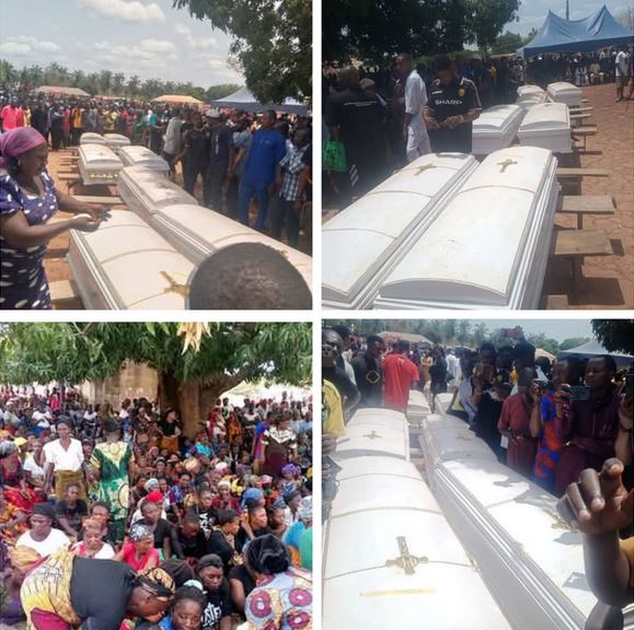 The mass burial is ongoing at Methodist Primary School in Otobi Akpa.