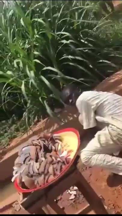 The aboki trader was seen washing the coconut he sells with gutter water.
