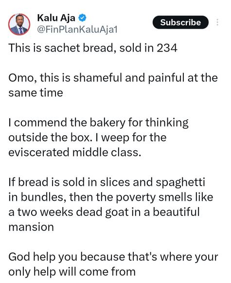 A Nigerian financial instructor, Kalu Aja, has reacted to the economic hardship in the country.