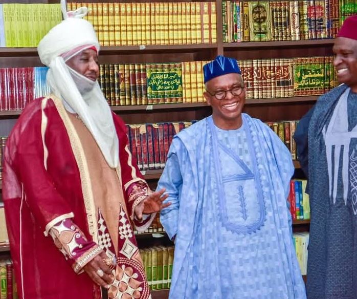 Former governor of Kaduna State, Nasir El-Rufai, paid a courtesy visit to the 16th Emir of Kano, Muhammadu Sanusi, at his palace on Monday, April 28, 2025.