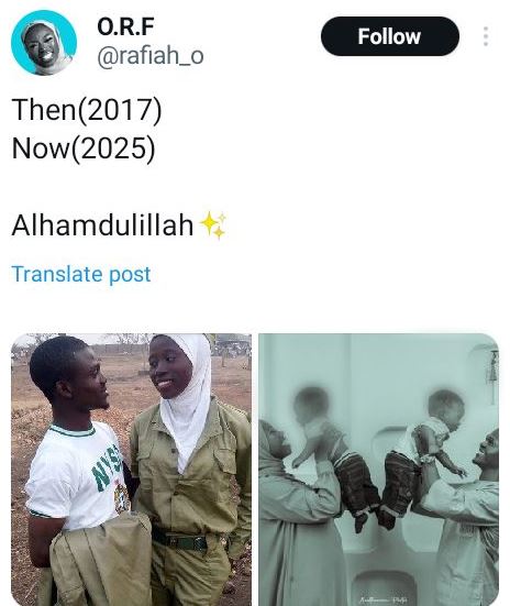 “Then (2017) Now (2025) Alhamdulillah,” she captioned the post.