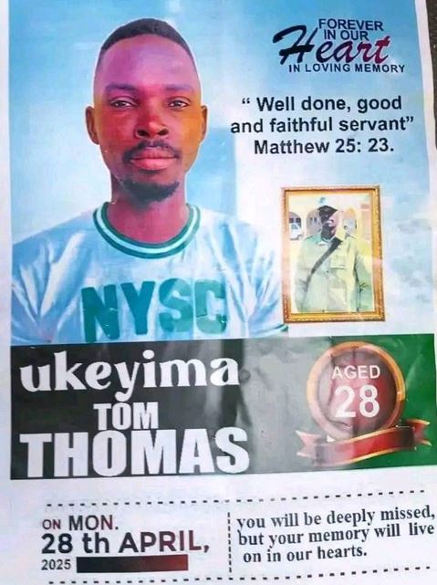 “My Dear Beloved Brother, Thomas Tom Ukeyima, as we embark on the journey of bidding you farewell, we find solace in the promise of eternal life. God, in His infinite wisdom, has granted you an exclusive Passing Out Parade ahead of schedule, welcoming you into eternity while your fellow corps members will undergo this rite in a few weeks,” he wrote in a Facebook post on Monday, April 29.