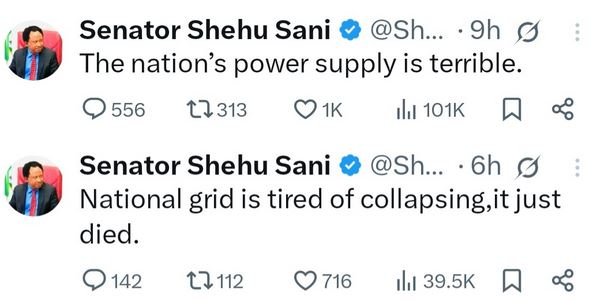 Former Kaduna lawmaker, Shehu Sani, has raised concerns about the epileptic power supply in Nigeria.